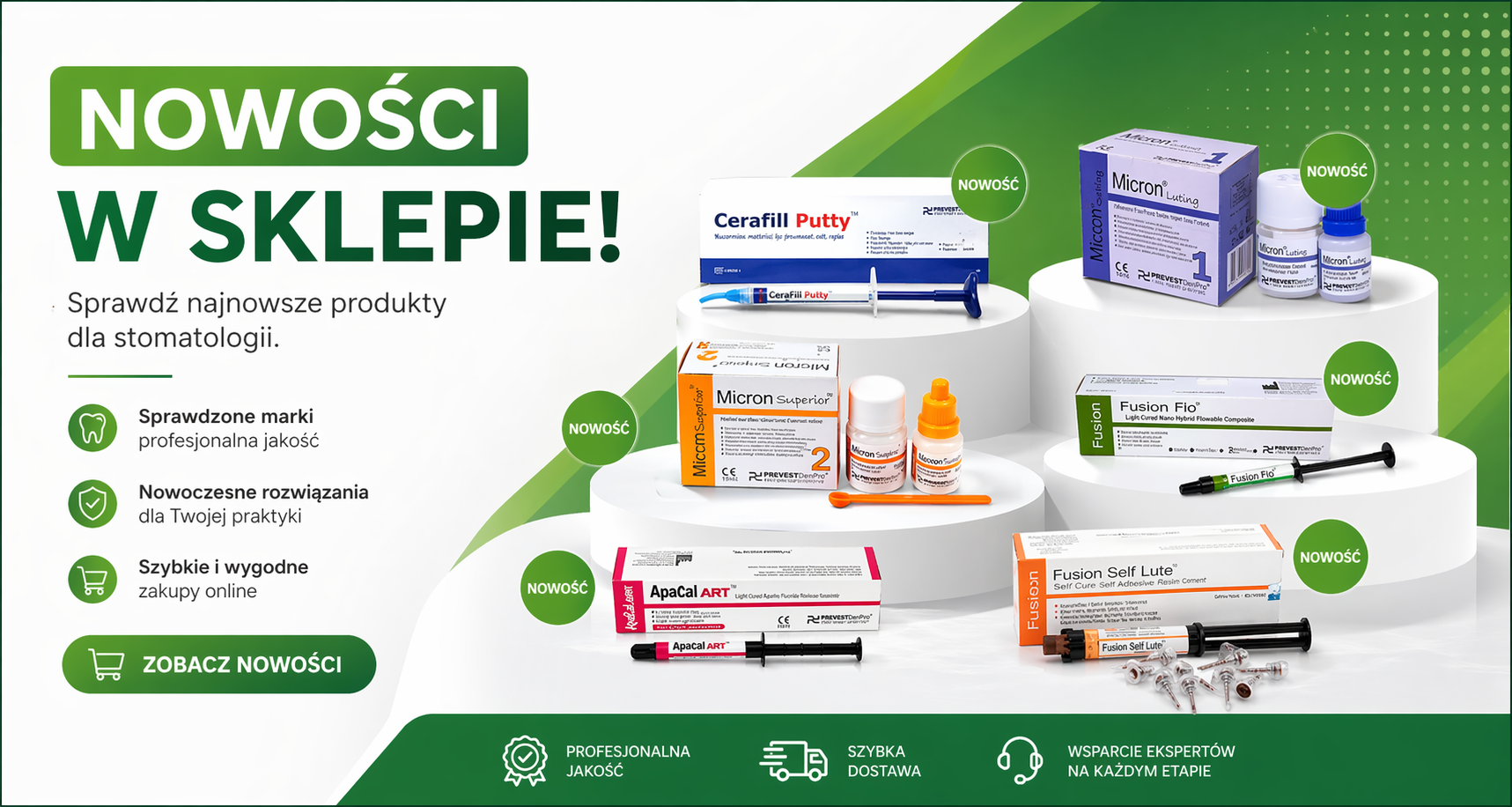 Codziennie poszerzamy naszą ofertę, dlatego warto regularnie odwiedzać nasz sklep stomatologiczny online i sprawdzać nowe produkty oraz promocje.Jeśli nie znalazłeś produktu, którego używasz w swojej praktyce, skontaktuj się z nami – chętnie go dla Ciebie sprowadzimy lub wprowadzimy do naszej oferty.