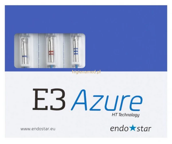 Endostar E3 Azure Basic, stworzone z myślą o szerszych kanałach korzeniowych. Dzięki zastosowaniu technologii Azure HT pilniki są wyjątkowo elastyczne i odporne na złamania, gwarantując precyzyjne opracowanie nawet w wymagających przypadkach klinicznych.