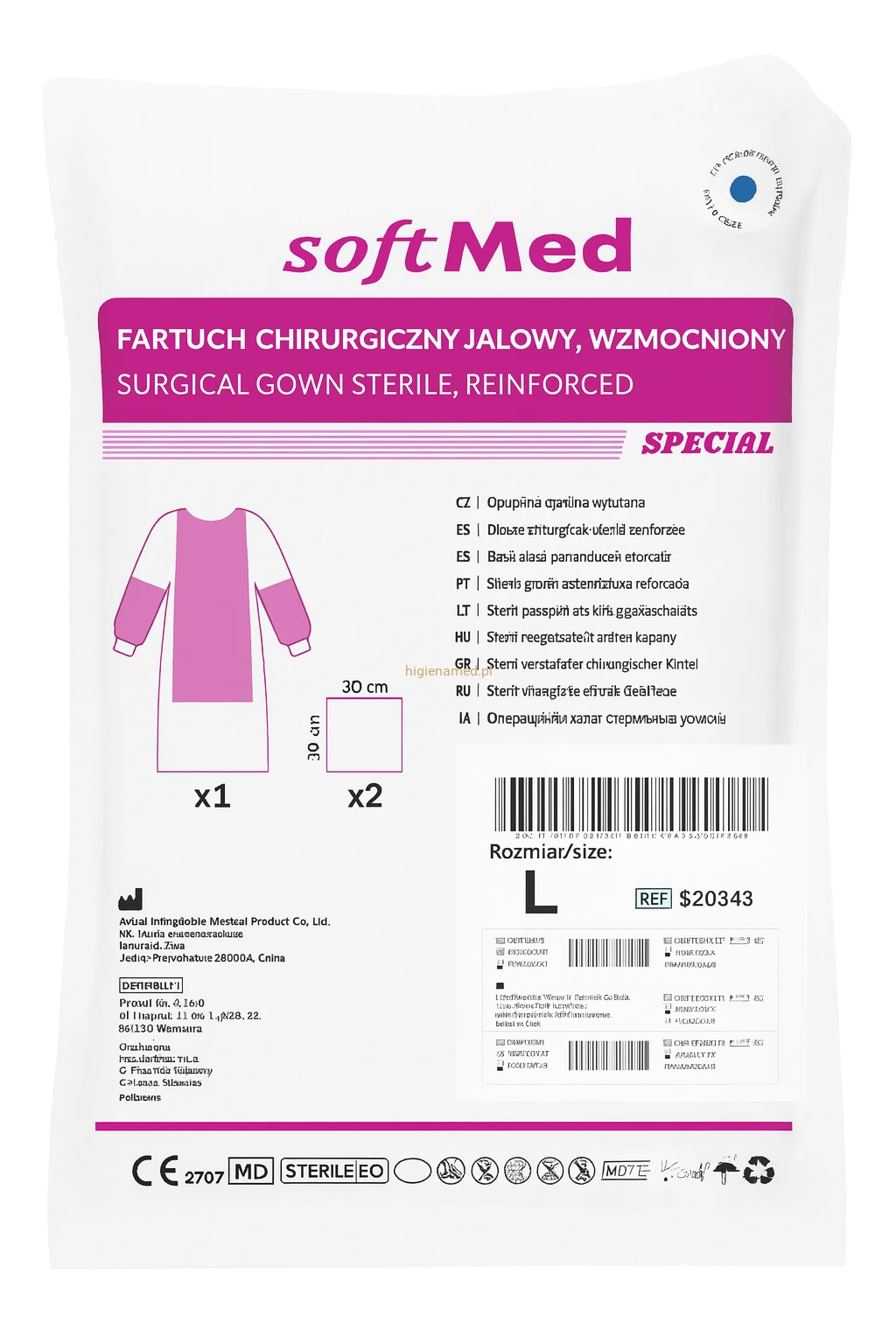 Jałowy, wzmocniony fartuch chirurgiczny w rozmiarze M, zapewniający skuteczną ochronę przed przenikaniem płynów i mikroorganizmów. Wykonany z wielowarstwowej włókniny SMS, gwarantuje komfort pracy i swobodę ruchów nawet podczas długotrwałych zabiegów. W zestawie 2 jałowe ręczniki chirurgiczne o wymiarach 30 × 34 cm.