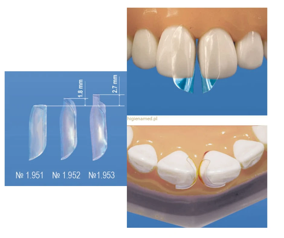 Łukowe matryce transparentne do przednich zębów / kształt 2 (1,8 mm wytłoczenia poddziąsłowego) / op. 10 szt. (1.952)