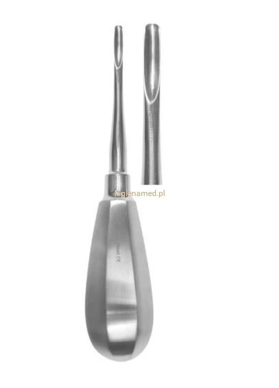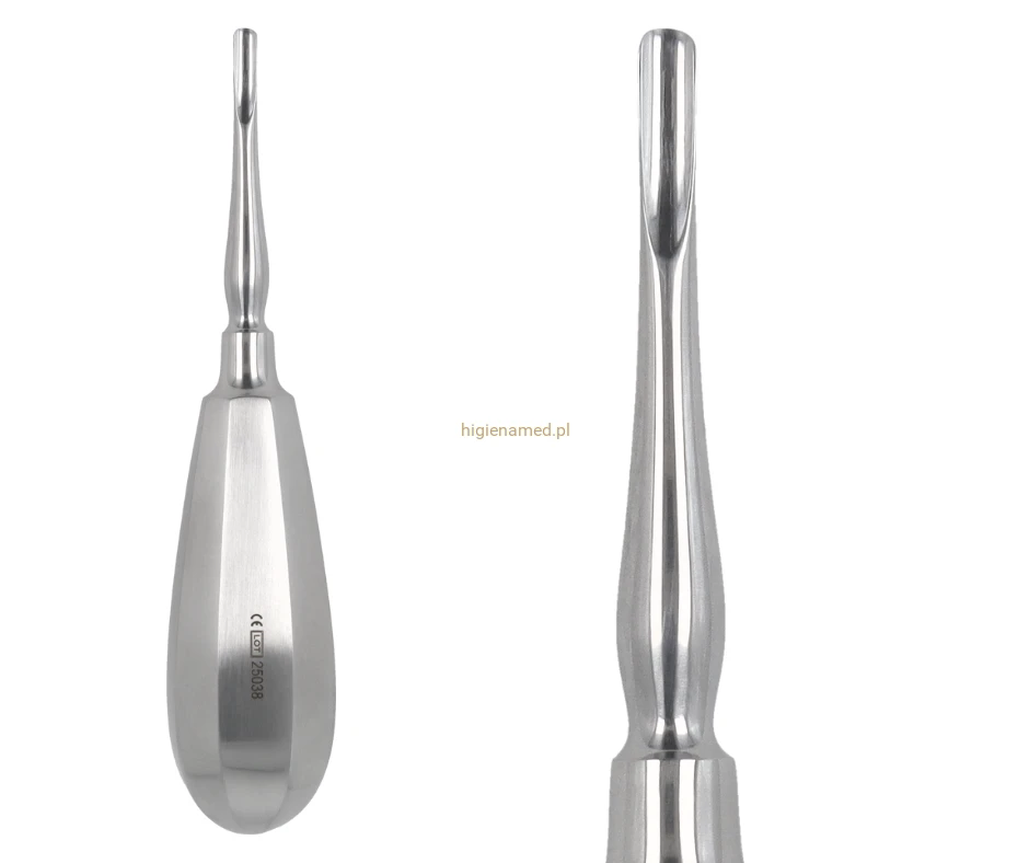Kształt końcówki: prosty (typ Bein) – umożliwia skuteczne wsunięcie się między korzeń a ścianę zębodołu