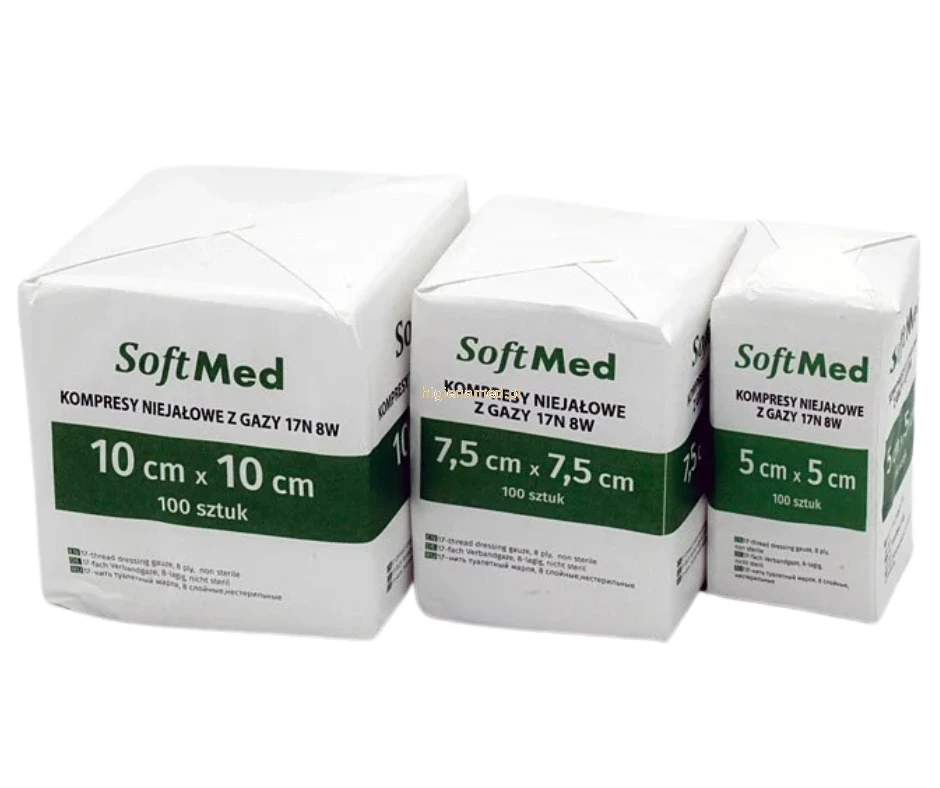 Kompres gazowy niejałowy 100 szt 10cm x 10cm SoftMed 17/8