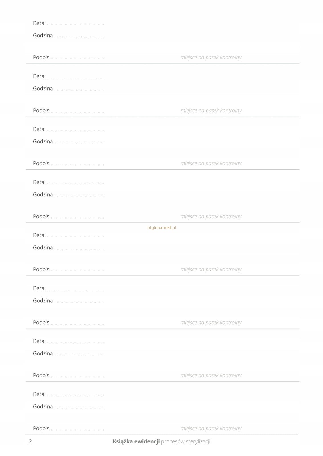 Książka ewidencji procesów sterylizacji