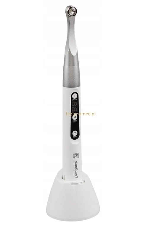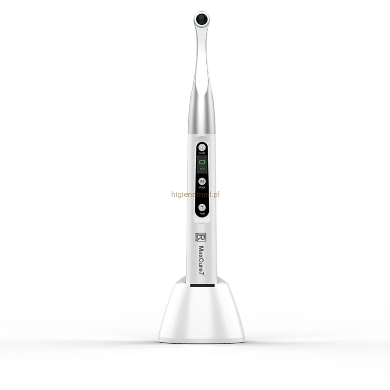 MaxCure7 to nowoczesna, bezprzewodowa lampa polimeryzacyjna LED przeznaczona do skutecznego utwardzania materiałów światłoutwardzalnych stosowanych w stomatologii. Dzięki zastosowaniu trzech diod LED (2 niebieskie + 1 fioletowa) urządzenie generuje szeroki zakres długości fali 385–515 nm, co zapewnia kompatybilność ze wszystkimi kompozytami dentystycznymi.