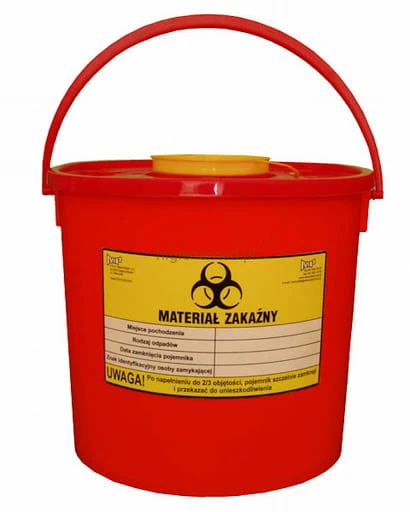 Jest zaopatrzony w etykietę ostrzegawczą "materiał zakaźny" oraz inne informacje zgodne z wymaganiami PZH