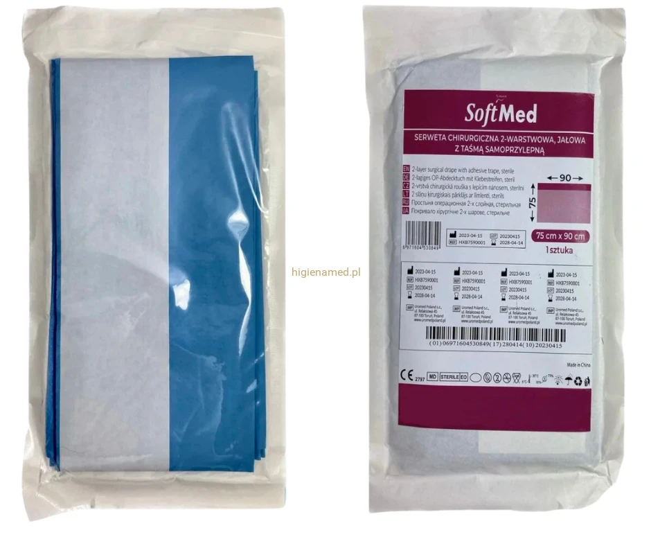 Serweta chirurgiczna 50 cm x 75 cm jałowa z taśmą samoprzylepną SoftMed