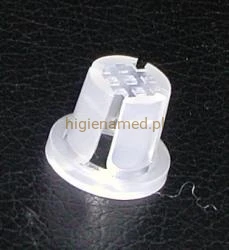 Białe sitko do ślinociągów stosowanych w celu zebezpieczenia systemu przed ciałami stałymi.