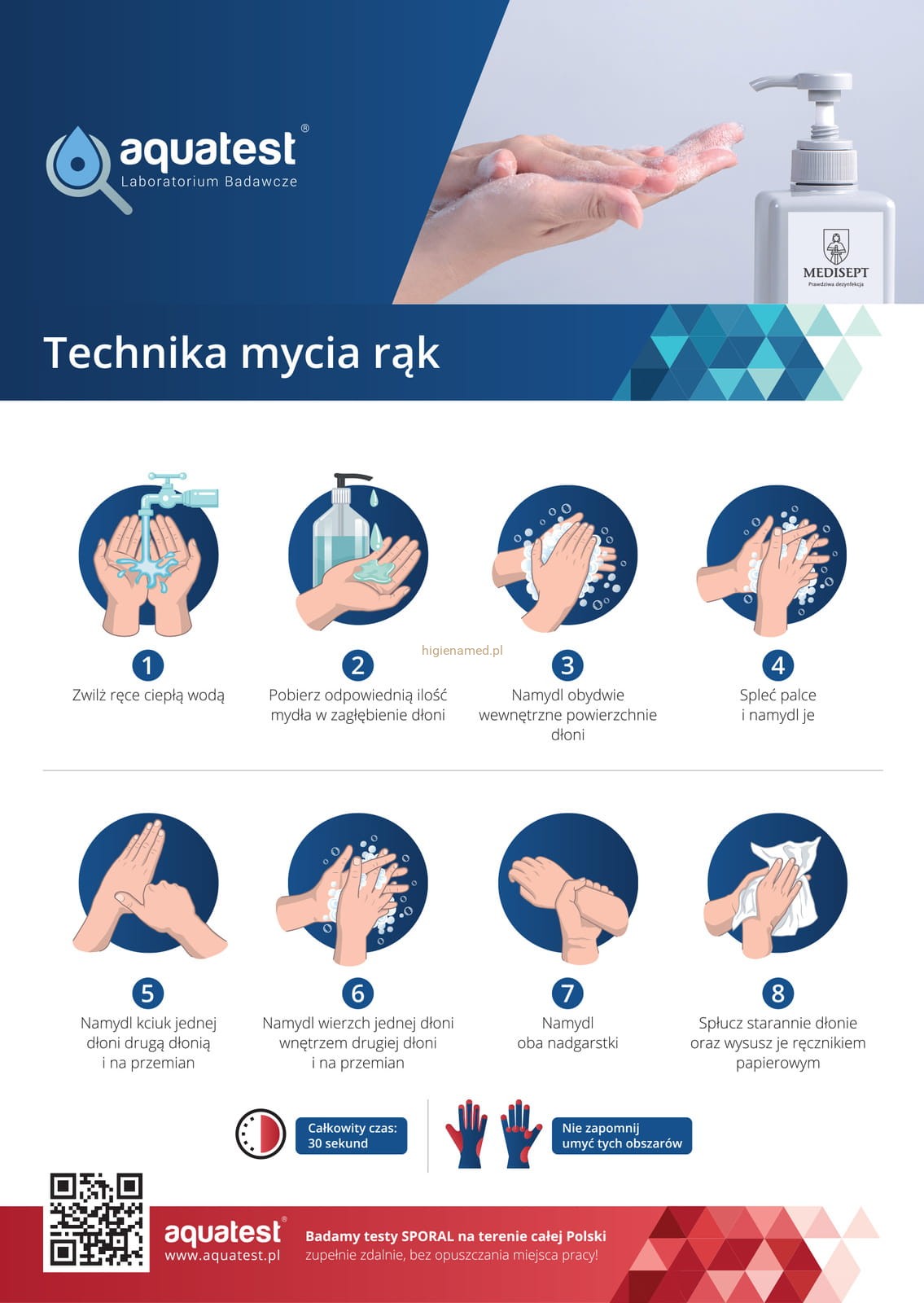 Technika mycia rąk PVC 24 x 34 cm AQUATEST