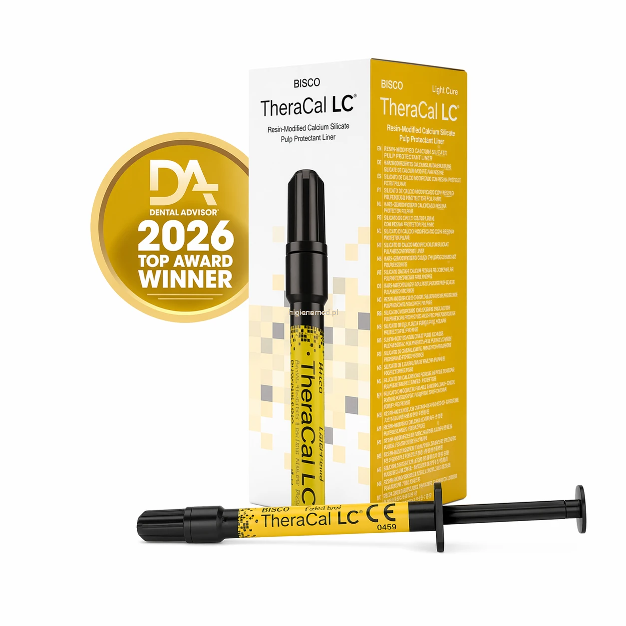 TheraCal LC to innowacyjny materiał stomatologiczny przeznaczony do pośredniego i bezpośredniego pokrycia miazgi. Dzięki zawartości krzemianu wapnia stymuluje tworzenie mostów zębinowych, wspiera regenerację tkanek oraz zapewnia ochronę miazgi. Charakteryzuje się hydrofilnością, uwalnianiem jonów wapnia oraz doskonałą adhezją do wilgotnej zębiny
