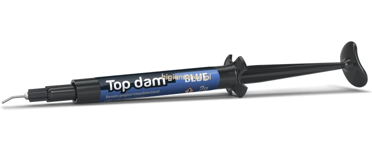 Top Dam – światłoutwardzalny płynny koferdam do skutecznej izolacji i ochrony dziąseł podczas zabiegów stomatologicznych. Tworzy szczelną barierę mechaniczną, zapewniając bezpieczeństwo i precyzję pracy.