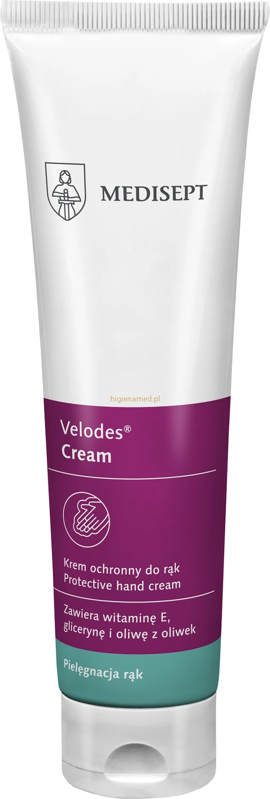 Velodes Cream to szybko wchłaniający się krem do pielęgnacji rąk i ciała z witaminą E, gliceryną i oliwą z oliwek. Nawilża, regeneruje i chroni skórę, szczególnie polecany przy częstym myciu i dezynfekcji dłoni.