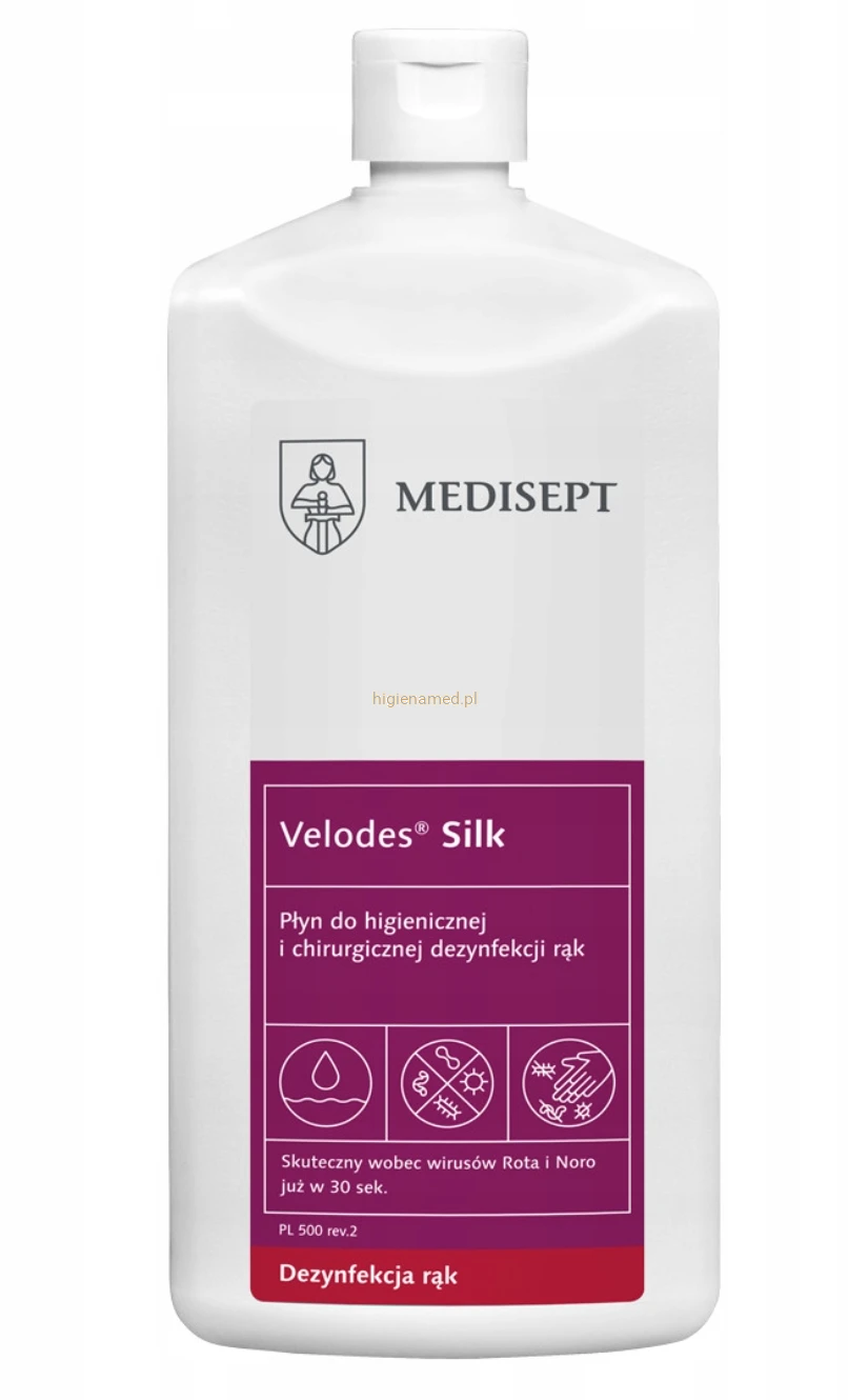 Velodes® Silk 500 ml to gotowy do użycia alkoholowy preparat do higienicznej i chirurgicznej dezynfekcji rąk oraz powierzchni. Skuteczny wobec bakterii, prątków i wirusów (w tym SARS-CoV-2), działa już w 30 sekund. Zawiera glicerynę, nawilża skórę i nie pozostawia uczucia lepkości.